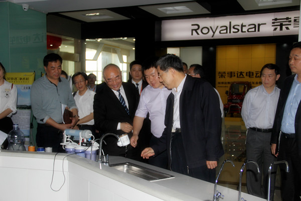 5月16日下午,中共中央委员、国家行政学院常务副院长马建堂、国家行政学院办公厅主任边?;恍性诎不帐「笔〕ぱ钫癯?、省政府副秘书长汪莹纯、省委统战部副部长徐发成、合肥市常务副市长韩冰、省工商联秘书长李俊波、合肥市市委统战部副部长夏向东、市政府副秘书长、办公厅主任秦继军、长丰县委书记许华,双凤管委会主任童有柱、安徽省净水行业协会会长王六一等的陪同下亲临荣事达水工业公司评估调研,董事长雷鸣陪同领导参观了荣事达智能家电研发中心产品展示厅,并出席了民间投资评估调研座谈会。
