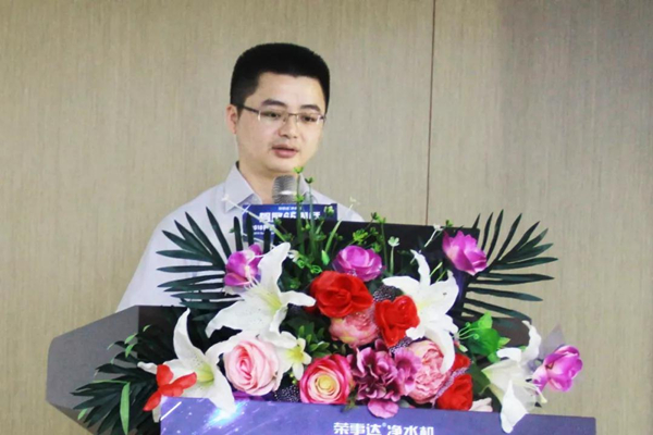 荣事达水工业公司总经理王悦生作发布会致辞。王总总结回顾了荣事达65周年历程,提出在新时代下的战略发展规划和目标,表明在未来荣事达也将继续创新求变,全方位夯实品牌基础,升级品牌价值,使荣事达这块民族“老招牌”焕发新活力,并简略介绍了荣事达全屋智慧净水生态系统的核心技术,希望能同新老代理商一起再创辉煌。