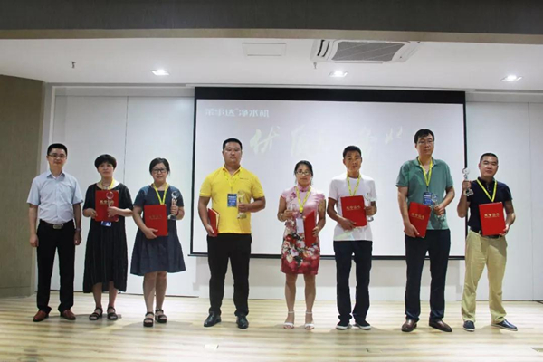 在新品发布环节,王总隆重介绍了荣事达数年磨一剑,研发出的全屋智慧净水生态系统,这是荣事达水工业公司科研实力的一次大升级,是荣事达水工业公司国家级净水实验室、业内顶尖设计人才精心研发的成果,是对荣事达65周年的献礼和向市场交出的答卷。荣事达全屋智慧净水生态系统包括智能前置过滤器、中央净水机、中央软水机、大通量反渗透净水机和智能管线机等一整套的新品设备,凝聚了十二大核心技术,以及“防爆科技”、“集成水路”、“大通量”、“小体积”等特点,提高安全性,增加人性化,充分符合城市家庭对全屋净水的需求,受到广大客户的关注。其中600G智能反渗透净水机,在不久前荣获有净水行业“奥斯卡”之称的 “泰利斯”卓越产品奖。