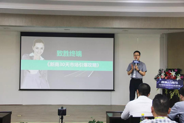 市场总监管仲在会上分享了最新的创新生态营销战略,深入浅出地阐释生态营销模式的理论和应用,深度剖析了从营销活动预热、活动开展到售后安装整个流程应如何操作,细致指导客户如何把握营销活动的时间节点、活动地点;如何推广产品、促成销售、拓展市场,让客户能够快速掌握并付诸实践,致胜终端。