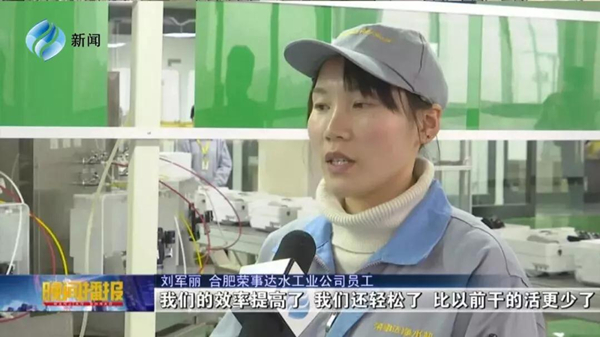 213日晚2130分,合肥新闻频道《晚间播报》节目播出新闻《人勤春来早 新车间开启新目标》,荣事达水工业公司作为本土知名企业,在新春伊始全面开启生产模式,公司全新投入使用的全自动智能化生产线、检测线上已是一片忙碌景象。