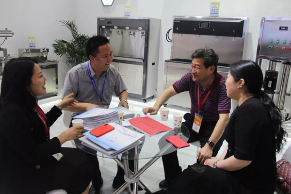 在主讲区,讲解员小蔡就企业最新研发成果向记者做了详细的介绍。他表示,信息网络化的发展,使越来越多校园步入了“互联网+”时代,而荣事达亦应走在前列。比如,此次展会首次亮相的荣事达物联网智能直饮机,就实现了校园直饮水的物联网嫁接,微信小程序后台管理,微信、支付宝扫码支付等等,让校园师生取水更加方便。除此之外,在前几个月召开的教育部《学校直饮水设备运维模式适用性研究》项目讨论会上,荣事达开发的“校园直饮水智慧管理系统”以创新独特的云端运维管理,也得到与会领导和行业专家的一致肯定。