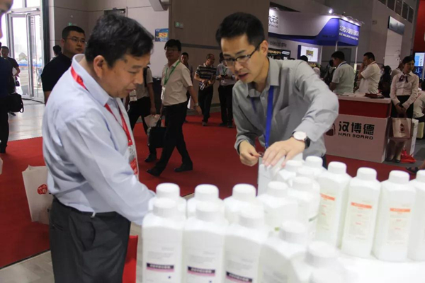 (荣事达工作人员为参观者进行产品讲解)