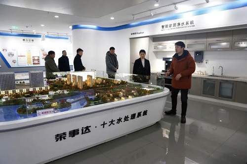 领导一行先后参观了荣事达智能家用净水生产车间和智慧水世界展厅。了解荣事达企业综合实力及十大水处理系统具体发展状况。