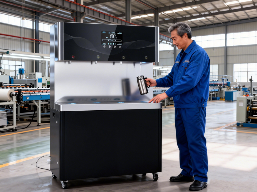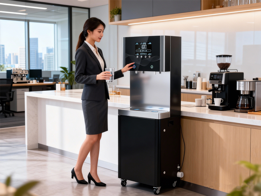 痛点解决:替代桶装水,智能运维省成本,8 寸彩屏 + 触控按键,办公饮水高效省心。