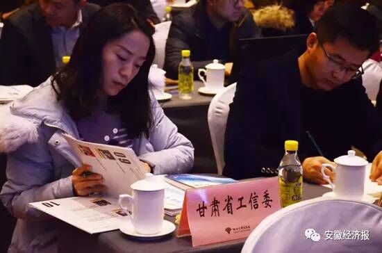 与会代表阅读由安徽省经信委编辑的《两化融合在行动》一书(安徽经济报社出版)