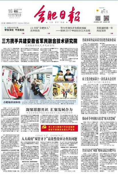 •     12月16日,中共合肥市委机关报《合肥日报》头版专题报道由国家工信部指导、荣事达独家承办的全国大企业“双创”现场交流会活动,报道中提出:本次会议,由国家工信部指导,省经信委、市政府、中国两化融合服务联盟、中国制造业与互联网融合发展联盟共同主办,荣事达集团公司承办,来自全国各地“双创”领域的专家学者、业界龙头企业代表等近400人出席了会议?;嵘希牖嶙曳直鹱髁酥魈夥⒀?,央企、互联网企业代表开展了双创实践经验交流,荣事达集团作为全国制造企业的唯一代表,分享了大企业双创实践成果。