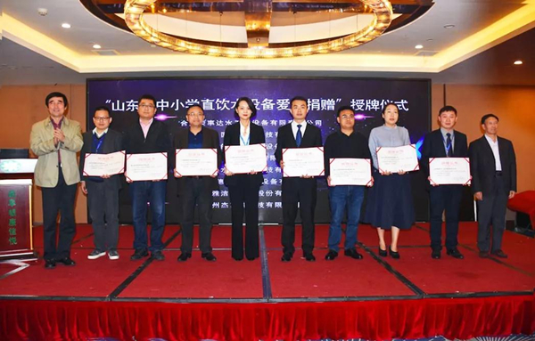 此外,山东省中小学直饮水设备爱心捐赠仪式也在会议上热烈举行,捐赠仪式由中国质量检验协会净水设备专委会副秘书长段蕊主持。今年6月份,由山东省教育装备技术服务中心提出给济宁市贫困学校捐赠一批校园饮水设备的倡议,得到了包括荣事达在内的优秀净水企业的积极响应和大力支持。在中国质量检验协会净水设备专委会的倡导组织下,多家企业共为山东省济宁市捐赠了近30台直饮水设备,价值100余万元,为济宁市中小学学生的饮水健康提供了保障。