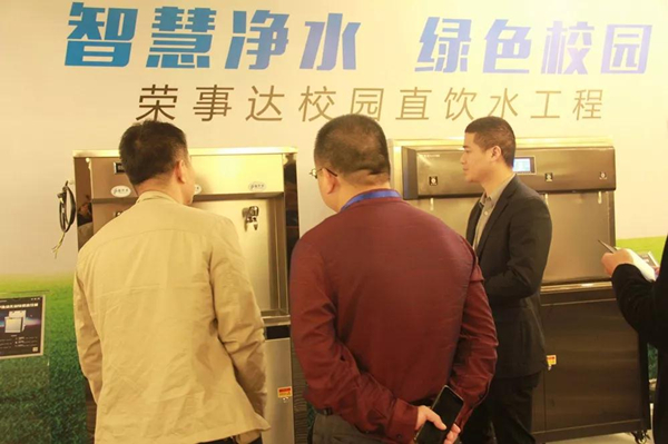 本次研讨会期间,会场内的荣事达校园直饮水展区也成为了众多领导嘉宾关注的焦点。此次荣事达展出的产品涵盖了刷卡节能直饮机、幼儿园特供直饮机、壁挂式温热饮水机、大型水处理设备等一系列校园直饮水设备,充分满足了学校饮水量大、净化效果好、安全性能高、使用成本低等多方面要求,其出色的产品性能和外观吸引了众多学校领导驻足询问。