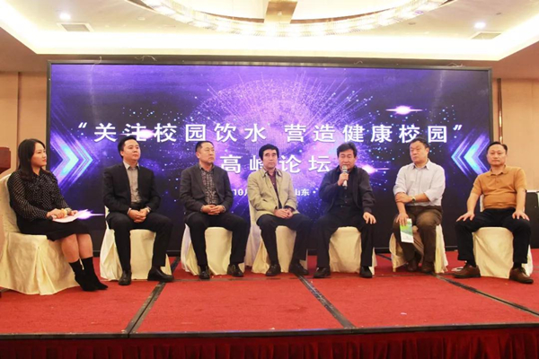 会上,一场主题为“关注校园饮水 营造健康校园”高峰论坛将会议推向了高潮。论坛由中国质量检验协会净水设备专委会副秘书长段蕊主持,教育部教育装备研究与发展中心后勤装备处研究员沈英琪、中国疾病预防控制中心环境所研究员白雪涛、山东省教育装备技术服务中心处长冯俊华、湖南省教育生产装备处科长姜乐勇、曲阜市鲁城街道孔子中学校长李群、荣事达水工业工程公司总经理刘东作为论坛嘉宾现场围绕校园饮水进行了深入的交流和探讨。