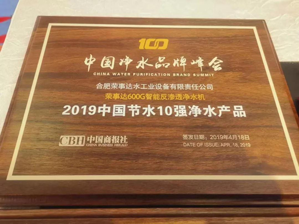 - 喜讯|热烈祝贺荣事达荣获“2019中国净水10强企业”、“2019中国节水10强净水产品”两项大奖