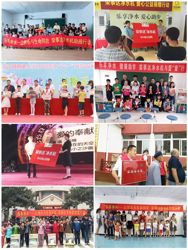 其实,早在2010年,荣事达就发起“乐享净水”公益行动,通过开展“健康助学”、“爱心助残”、“爱心敬老”等各类活动,走进贫困地区学校、助残机构、敬老院等免费提供直饮水设备和志愿服务。荣事达水工业集团董事长雷鸣曾表示,荣事达的“乐享净水”行动,更像是一个爱心纽带,通过它可以凝聚更多代理商和社会人士的责任之心。荣事达“乐享净水”公益行动自发起以来,志愿服务团队已遍及安徽、江苏、陕西、河南、河北等多个地区,捐赠、安装净水设备数千套,受益群体庞大,赢得了社会的一致好评,其中“乐享净水 爱心助残”行动更是获评“安徽省第三届青年志愿服务项目大赛二等奖”荣誉。