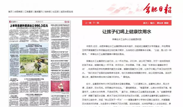合肥日报 《让孩子喝上健康饮用水》