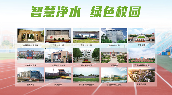 荣事达水工业先后承建了中国科学技术大学、河南大学、西北农林科技大学、江苏省丹阳市第五中学等三千五百余所学校的直饮水工程,‘喝’护千万师生饮水健康。