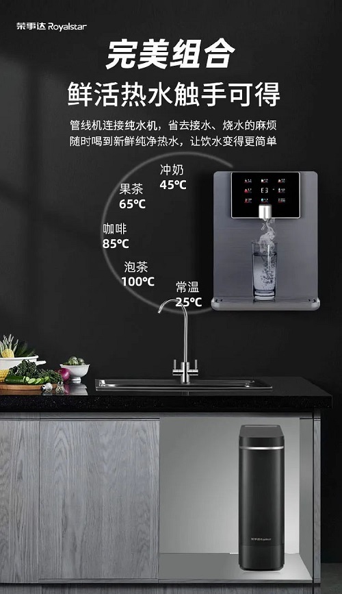荣事达智能反渗透纯水机+荣事达智能饮水机简直就是完美组合,这个秋冬季只要拥有它们,就能随时享用安全健康的温热水啦!