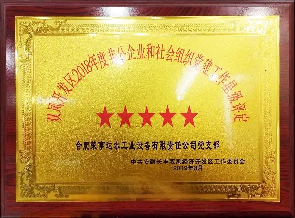 荣事达水工业党支部自成立以来,积极促进党建成果引领和推动公司的全面建设和发展,先后组织了党史学习教育、扶贫捐赠、疫情捐赠等多项党建工作和公益行动, 连续多年荣获五星级党组织、先进基层党组织等多项荣誉。