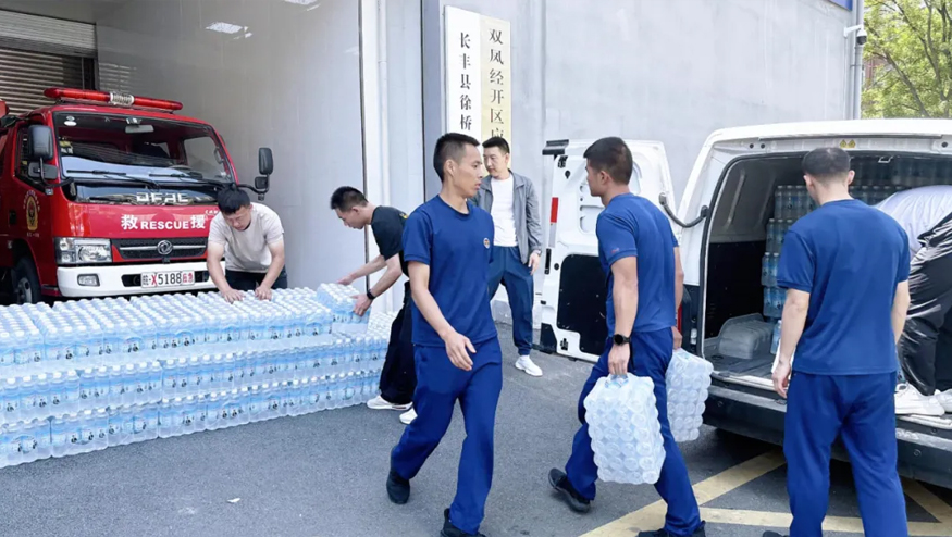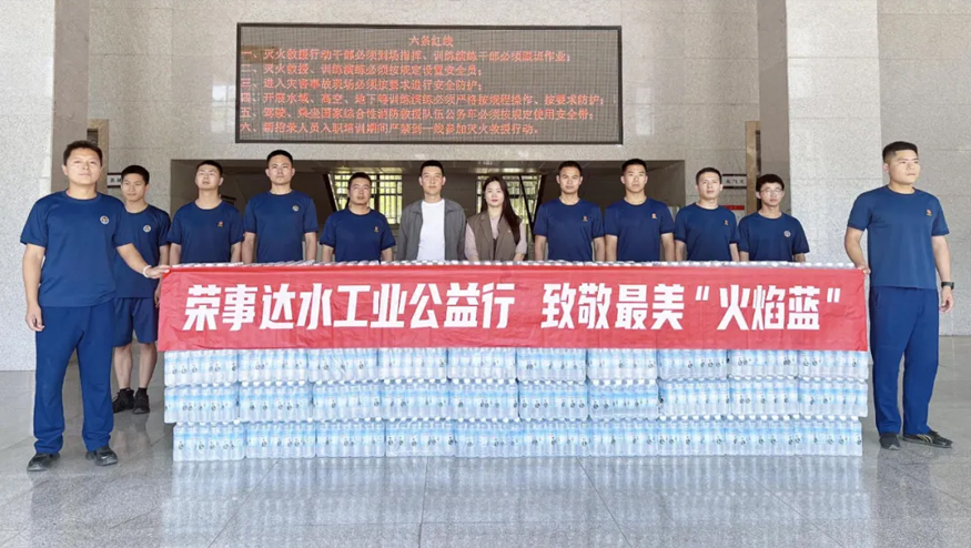 5月12日,荣事达水工业开展公益行动,集团行政总监雷鹏、党支部书记肖晓晓来到双凤经开区徐桥苑消防执勤点、长丰县消防救援大队捐赠饮用水,致敬最美“火焰蓝”,以实际行动传递企业的温暖与担当。
