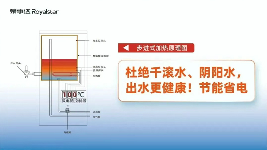 设备采用了多级过滤与RO反渗透技术,能够有效滤除水中的泥沙、铁锈、重金属、余氯等有害物质,确保水质干净、安全,出水达到直饮标准。同时,步进式加热设计避免了“阴阳水”的产生,保证了连续供应开水的品质。