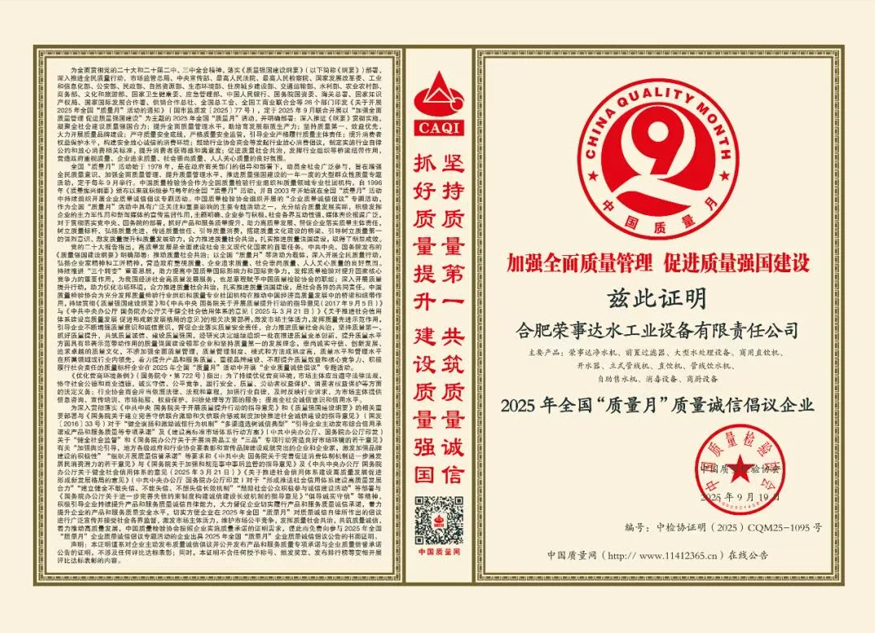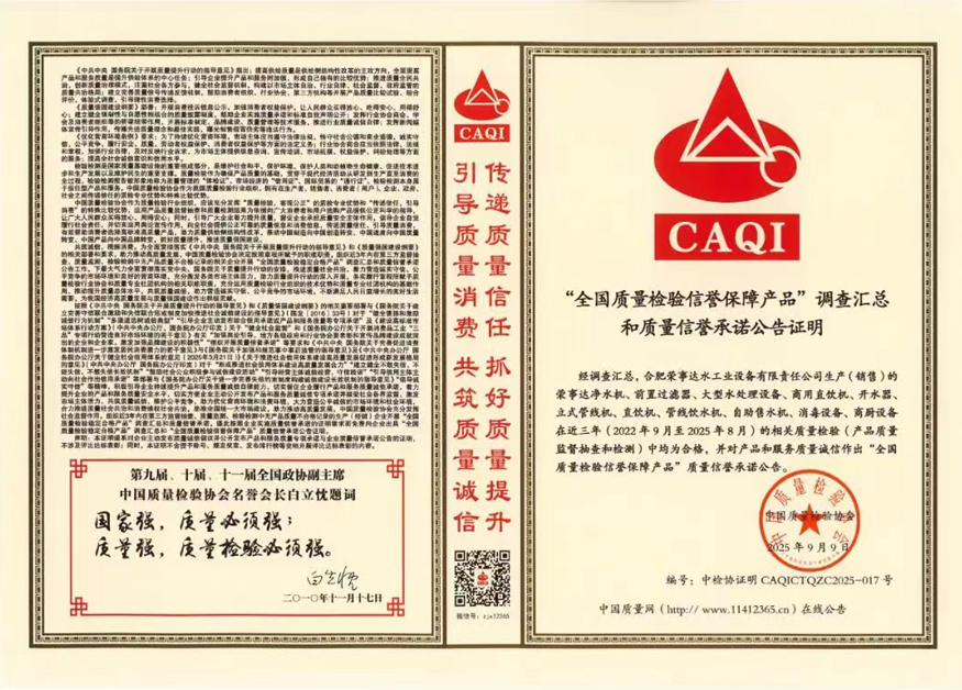 未来,荣事达水工业将继续秉持“质量为先、诚信为本”的理念,在净水技术创新与产品品质升级上持续发力,打造全场景、多领域的饮水解决方案,为推动我国净水行业高质量发展与“质量强国”建设贡献更多力量。