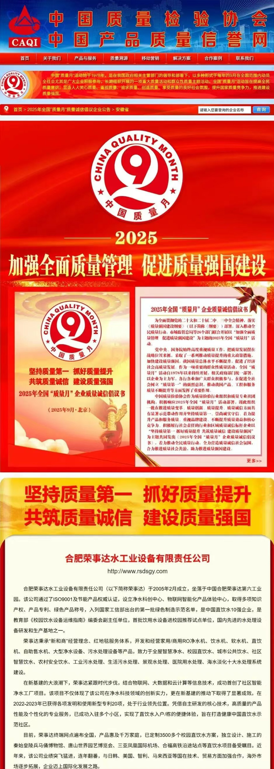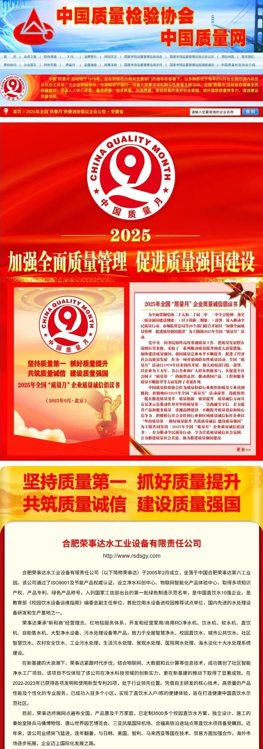 • 热烈祝贺荣事达水工业在2025年全国“质量月”活动中斩获“全国净水行业质量领先品牌”“全国消费者质量信誉保障产品”等五项殊荣
