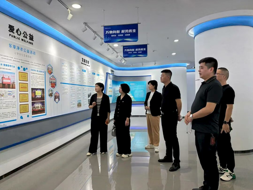 签约仪式后,安徽邻泰医药集团秘书长葛静梅一行参观智慧水世界展厅,了解荣事达水工业20年的发展历程以及公司多领域的项目成就,对其“新和商”经营理念与“红地毯”服务体系表示高度认可。展厅内陈列的企业荣誉、公益成果、多领域项目等,进一步夯实了双方合作的信任基础。