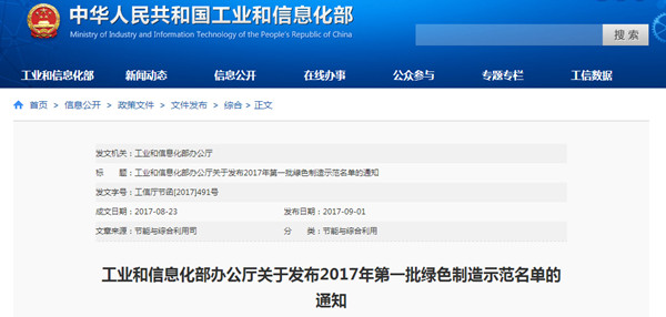 为贯彻落实《中国制造2025》,深入实施绿色制造工程,加快构建绿色制造体系,率先打造一批绿色制造先进典型,工信部确定了2017年第一批绿色制造示范...