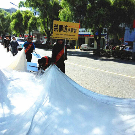 十一黄金周,国庆变“家”节,新人扎堆结婚,在这普天同庆的日子里,身着百米纱裙的新娘幸福地挽着新郎,走遍东宁县城。荣事达与其他品牌的工作人员一起托起新娘的纱裙,致力于用自己卓越的产品品质托起新人幸福的生活,陪伴新人走向幸福之路。此次活动在东宁县城引起很大反响,许多新房业主到当地专卖店咨询水家装方案,七成消费者当场即选购产品,准备为新家安装净水设备。