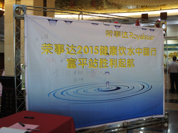 •     6月29日下午,荣事达水工业公司在陕西省渭南市富平县富尔大酒店召开了以“荣事达2015健康饮水中国行”为主题的招商会,会议吸引了近百名意向客户的参加,成功订购净水机千余台,签约总金额高达一百万元。