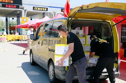 8月6日上午,团市委书记马进伟、合肥市青年志愿者协会相关领导、荣事达水工业集团董事长雷鸣一行人来到蜀山高速道口看望正在辛苦奋战在一线的青年志愿者们,为他们带来了苏打水、淡盐水等饮品。