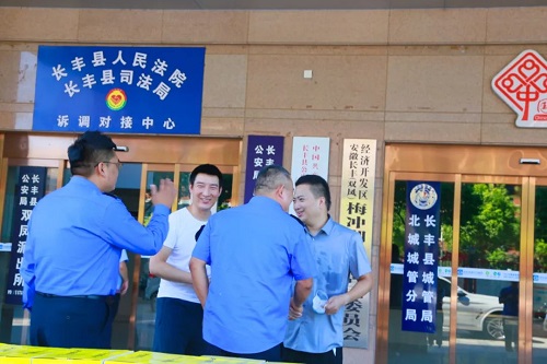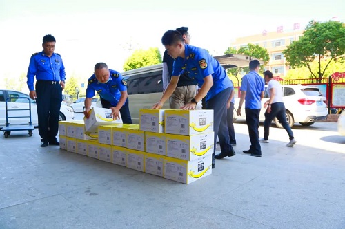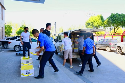 8月12日上午,荣事达水工业集团为双凤城市管理行政执法中队送去一批苏打水,向坚守在城市管理一线的工作者们表达敬意。